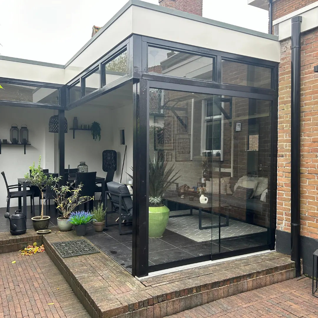 1. Hoogwaardige materialen: De glazenschuifwanden van ST Garden & Veranda zijn gemaakt van sterk, veilig en duurzaam glas, gecombineerd met robuuste railsystemen. Dit zorgt voor een lange levensduur en een blijvende, heldere uitstraling zonder concessies te doen aan veiligheid of kwaliteit.